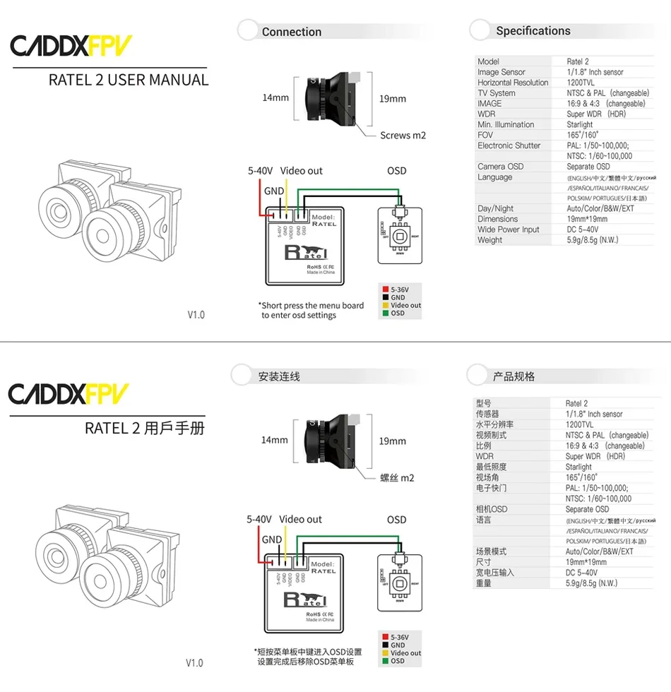 - 1x Камера Caddx Ratel 2