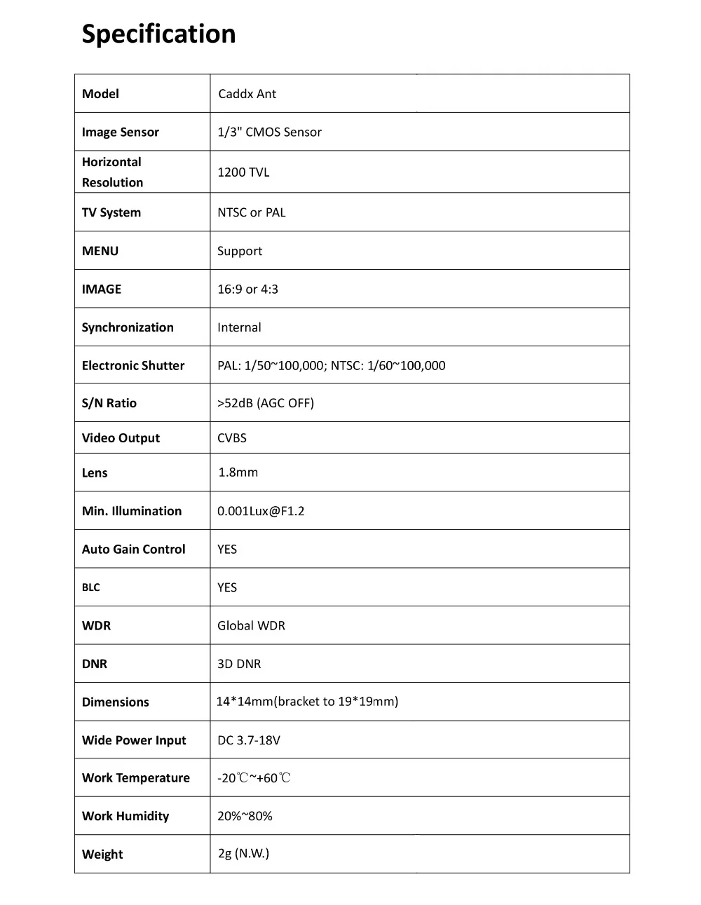 - Модель: Caddx Ant