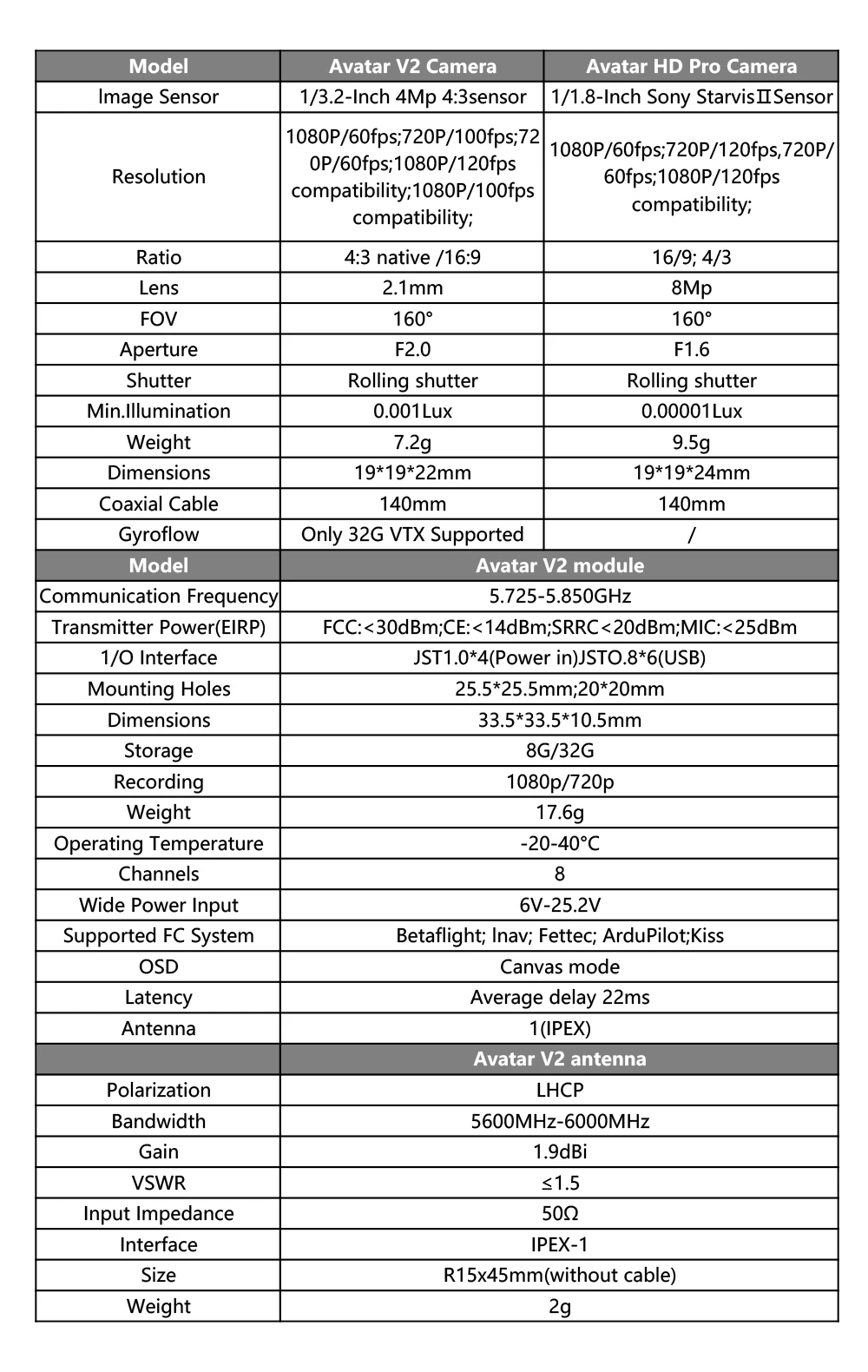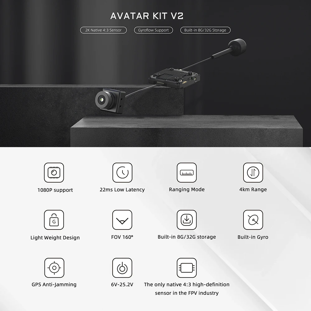 - Єдиний натівний 4:3 HD датчик у FPV-індустрії