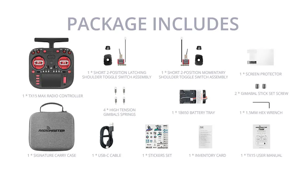 - RadioMaster продовжує переосмислювати світ відкритих пультів дистанційного керування. Після багаторічної співпраці з нашими open-source партнерами та користувачами ми з гордістю представляємо TX15 MAX. Завдяки високопродуктивному чипу STM32 H7 це найпотужніша наша апаратура — забезпечує надзвичайно плавне керування EdgeTX, миттєве перемикання моделей та блискавичне виконання скриптів. З 4GB вбудованої пам’яті та можливістю розширення MicroSD