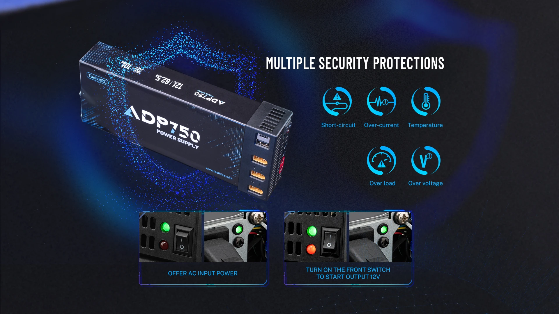 Пристрій працює від мережі AC 100–240V, має високу вихідну потужність і стабільні характеристики, забезпечуючи надійне живлення навіть при великих струмах.