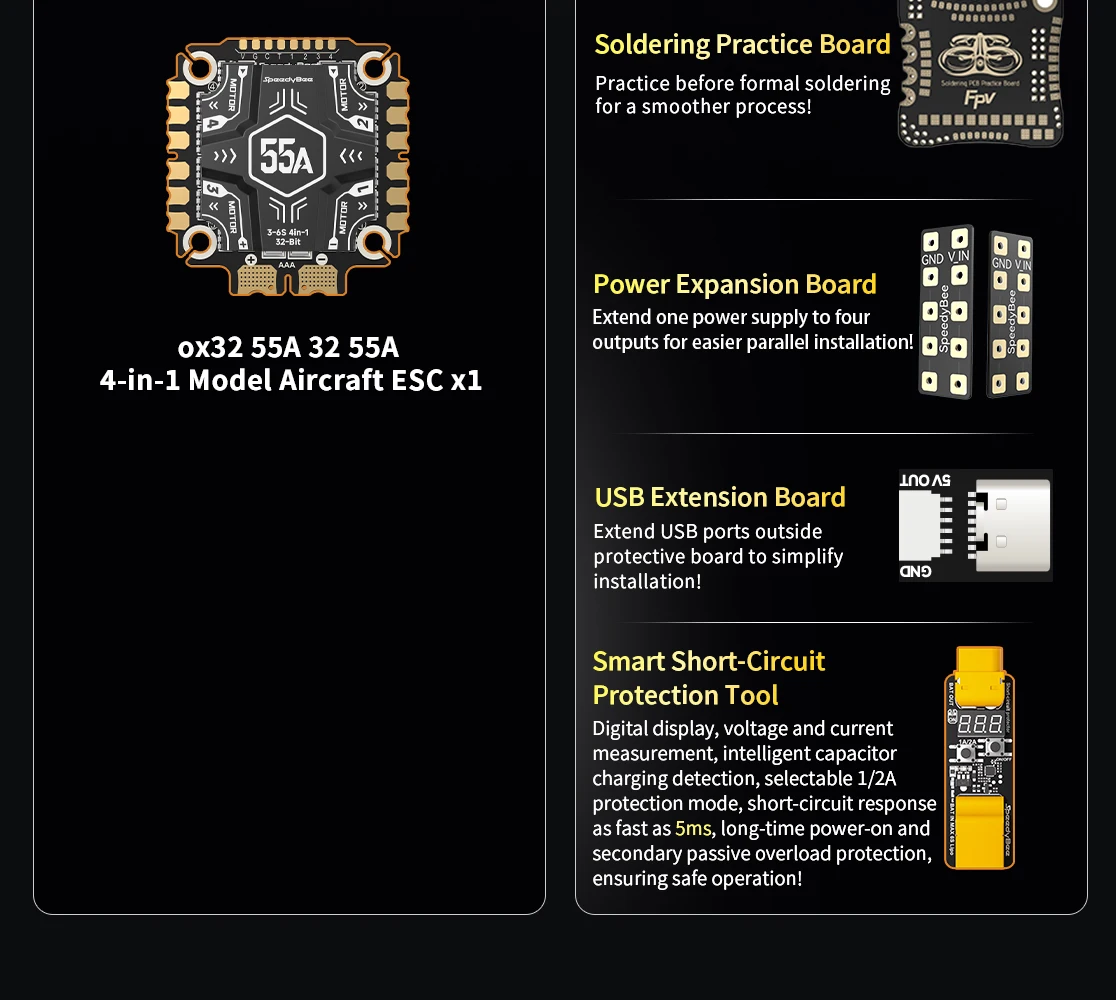 - Повнофункціональне Bluetooth-налаштування: Підтримується. Під'єднання через додаток SpeedyBee для прошивки та налаштування параметрів.